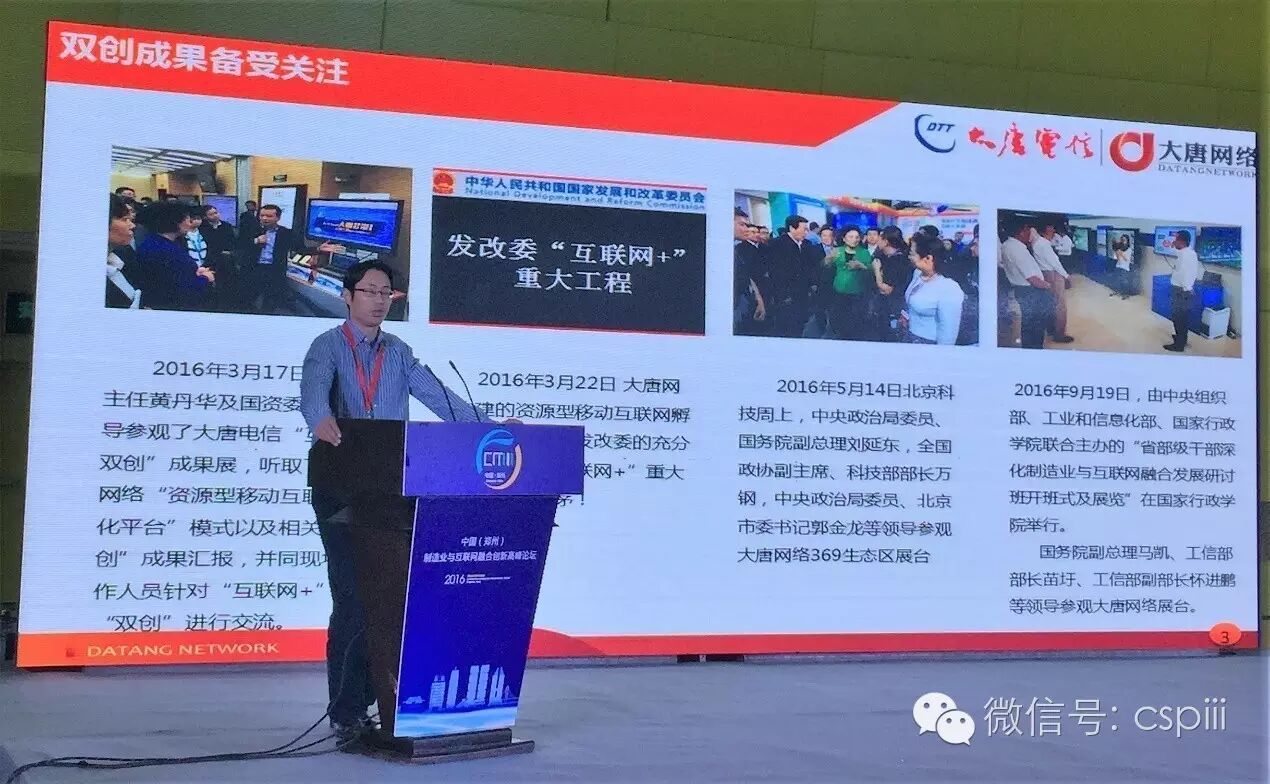 大唐网络有限公司副总裁刘君围绕“‘互联网+’推动产业转型升级,‘双创’激活企业创新动力”做主题演讲。大唐电信的“双创”模式是打造互联网+”和“集成电路+”双创平台,同时构建以“369云平台”技术孵化为主体,“369云工厂”实体园区资源对接服务,“369云投资”投融资服务和 “369云学院”人才培养服务为支撑的协同发展机制。