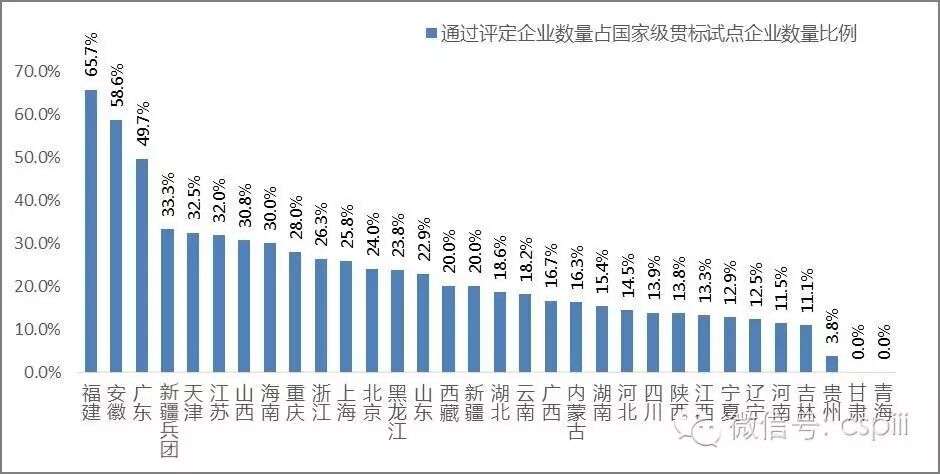 图1-6 各省已经通过评定企业数量占本省国家级贯标试点企业数量比例