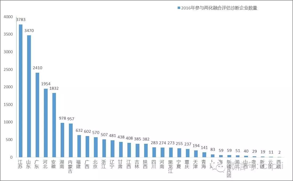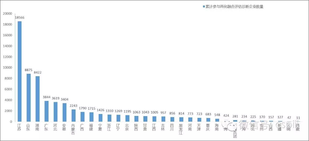 按照《工业和信息化部办公厅关于持续开展企业两化融合评估诊断和对标引导工作的通知》(工信厅信软函〔2016〕269)工作部署,各省工信主管部门应按年度周期性组织开展企业两化融合评估诊断和对标引导工作,每年6月底前组织辖区内企业依托中国两化融合服务平台的各省级评估服务分平台(www.cspiii.com/pg/)完成两化融合评估诊断工作,每个省级单位参评企业数量不少于1000家或不少于列入国家统计监测的规模以上工业企业数量的50%,研制形成本省市两化融合数据地图,组织开展数据地图应用推广工作,推动形成以数据为核心的精准施策新模式。截至2016年8月31日,全国已有69786家企业开展了自评估、自诊断、自对标,其中2016年填报企业达21799家。