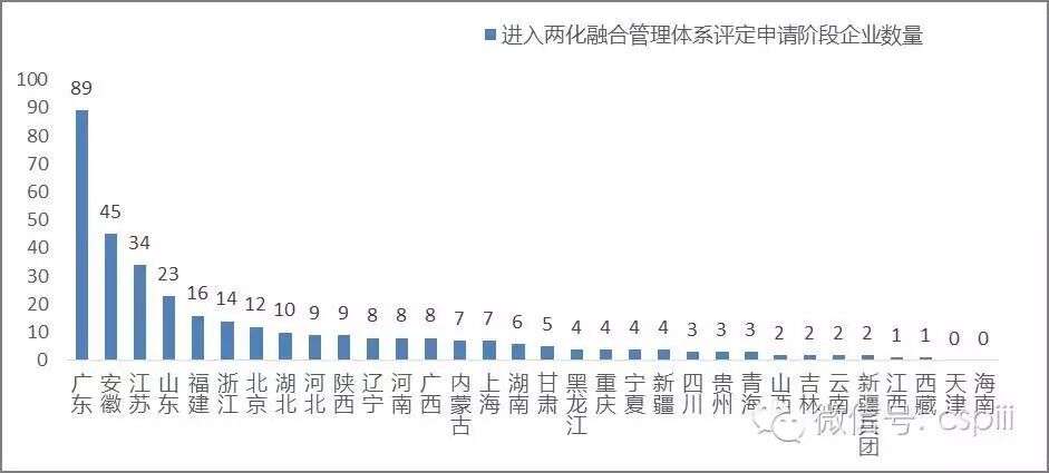 图1-4 各省进入两化融合管理体系评定申请阶段企业数量