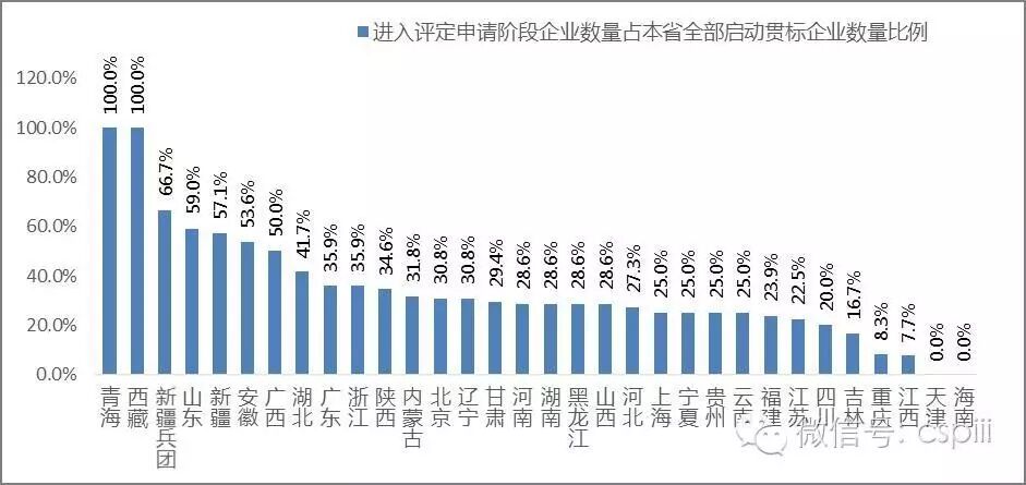 图1-5 各省进入评定申请阶段企业数量占本省全部启动贯标企业数量比例