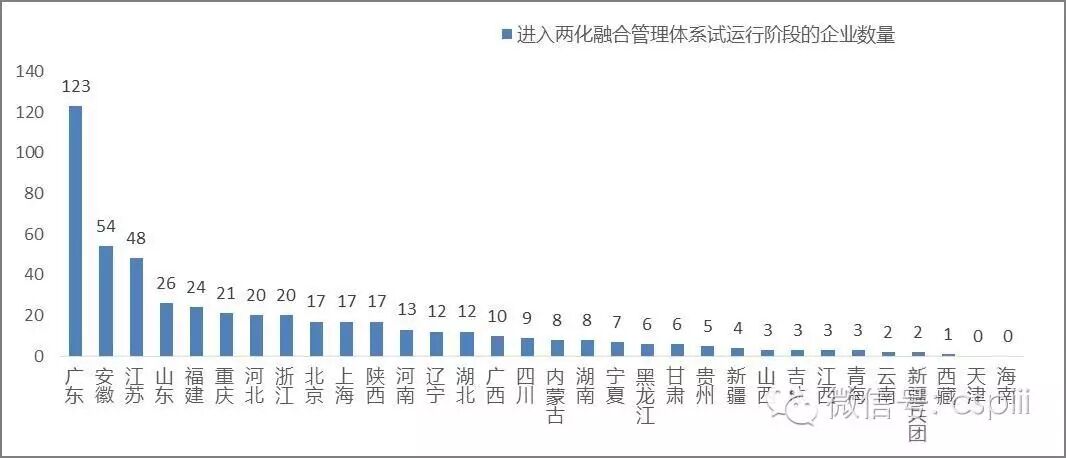 图1-3 各省进入两化融合管理体系试运行阶段企业数量