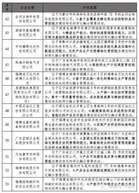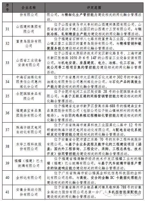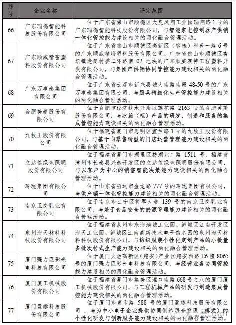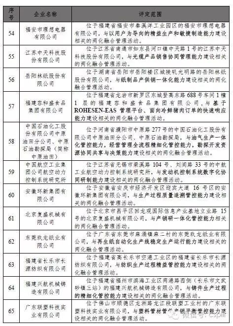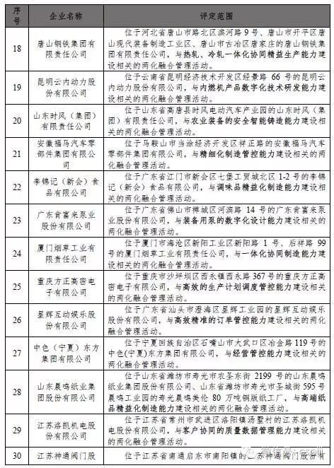 依据《信息化和工业化融合管理体系评定管理办法(试行)》(工信部信〔2014〕564号),通过现场评估审核、合规性审查、专家复核和公示等环节,2016年7月1日至8月31日期间,全国共新增89家企业通过两化融合管理体系评定,企业名单如表1(排名不分先后)。通过评定企业信息可通过两化融合管理体系评定管理平台(gltxpd.cspiii.com)查询。