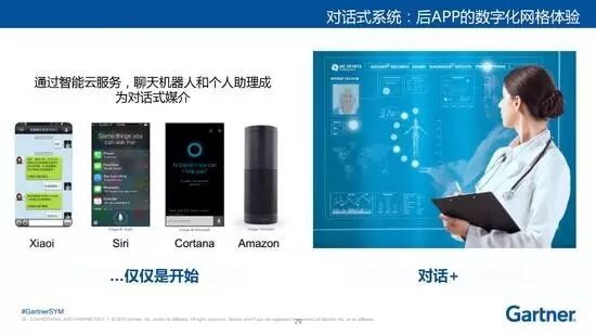 宏观来看,在《2017十大技术趋势》报告中,Gartner前瞻性的预告“conversational+”为物联网时代人机交互体验的潮流,不仅为人工智能的下一个走向标明了方位,也为整个科技领域的创新趋势提供了极具价值的参考。