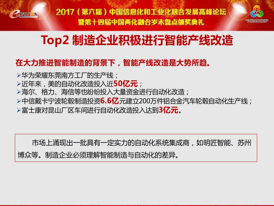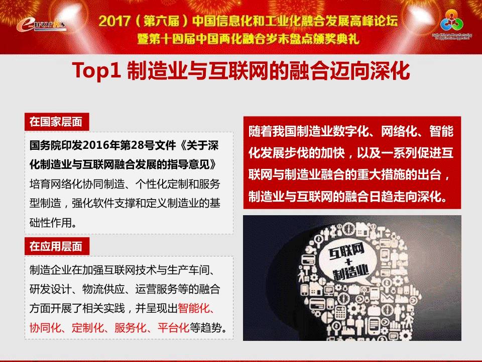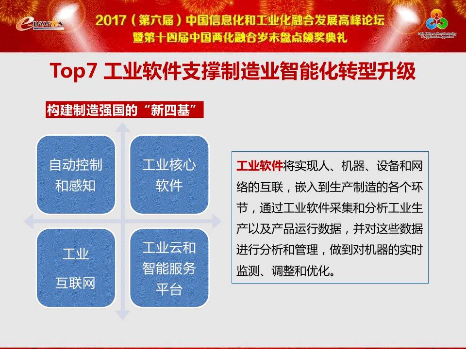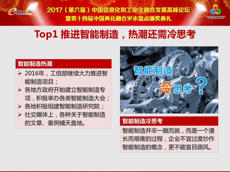 导览 中国工程院院士、中国机械工程学会理事长、华中科技大学老校长、著名制造业专家李培根教授对2016-2017中国制造业十大热点和两化融合十大热点进行了剖析,解读了过去一年制造业及两化融合领域的重大事件、热门趋势和技术革新。
