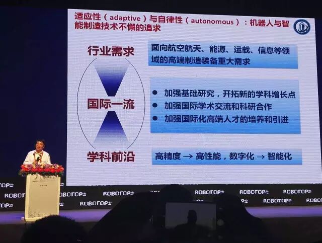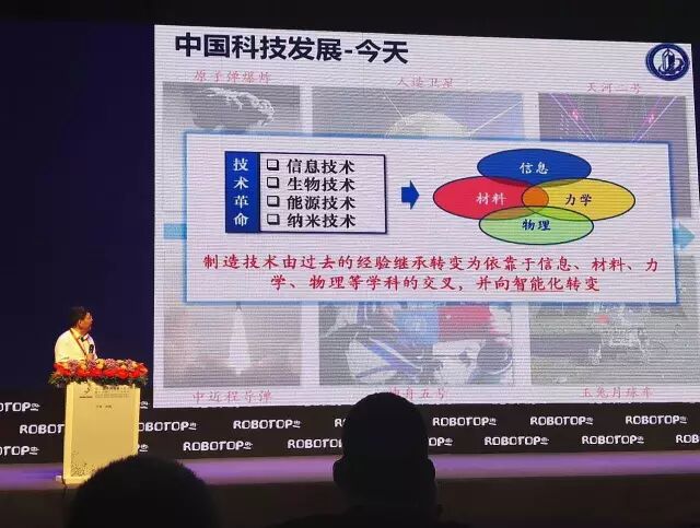 尊敬各位来宾,各位专家,大家上午好。今天非常荣幸有这个机会来参加第三届机器人峰会,也有机会把我在智能制造方面一些体会跟大家分享一下。我报告主要分三方面进行,首先讲一下智能制造技术,第二个讨论一下机器人技术的发展思考,第三个介绍一下近期的工作。