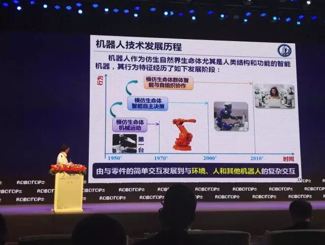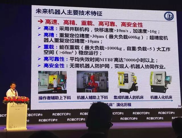 今天的机器人,未来的机器人我可能会将由现在的简单交互,发展到与环境、人的交互。机器人发展会呈现这样的变化趋势。有两点肯定,无论机器人怎么发展,高可靠,高速、重载,高安全性肯定的。不管什么东西,机器人动力学,机器人传感,机器人结构,像并联机构,。未来机器人有特点一个就是本,效率可靠,安全,就是力气也大,灵活,这是一个特点。第二个特点可能就会出怎么样机器人共融的环境。江两环境中机器人人类共同把一个事情做好。而不是机器人把人替代,人发挥人的优势,机器人发挥机器人的优势。共融。我觉得这个机器人一方面方面共融,操作者共融,跟其他人自然交互,能够适应复杂的环境。将来是机器人和环境共融的发展是未来的趋势。