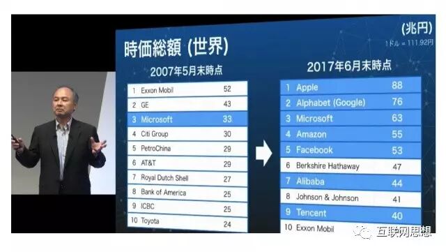 基于去年软银3兆3000亿日元收购了的英微处理器ARM和10兆日元的软银愿景基金。孙正义构想了他脑海中30年后物联网商业的轮廓:“30年后,物联网将使全球网络化、智能机器人将渗透我们的日常生活、AI将超越人类智力。那个时候,世界会发生什么呢?我敢肯定的是人类寿命将延长到100岁以上,人类和机器人共生……我看着企业有效地利用物联网、智能机器人、人工智能等科技工作的同时,也深刻感受到一个全新的世界正将到来。”以下为演讲和PPT实录。